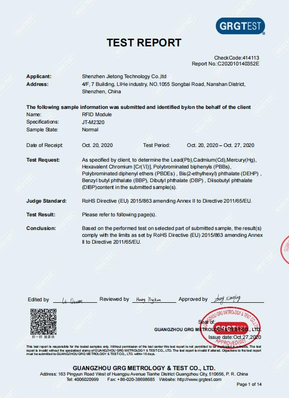 RoHS-Bericht_JT-M2320 RFID-Modul